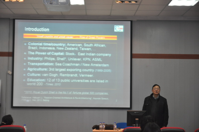 2014年5月5日,荷兰代尔夫特理工大学博士、中国科公司研究生院计算机领域客座教授、荷兰鹰格集团的首席顾问官、CLEBA研究项目的负责人和CLEBA Group的首席技术顾问李海宽访问三亿体育,为公司师生做了题为《面向关系的架构与大型复杂系统的重构技术》的报告。