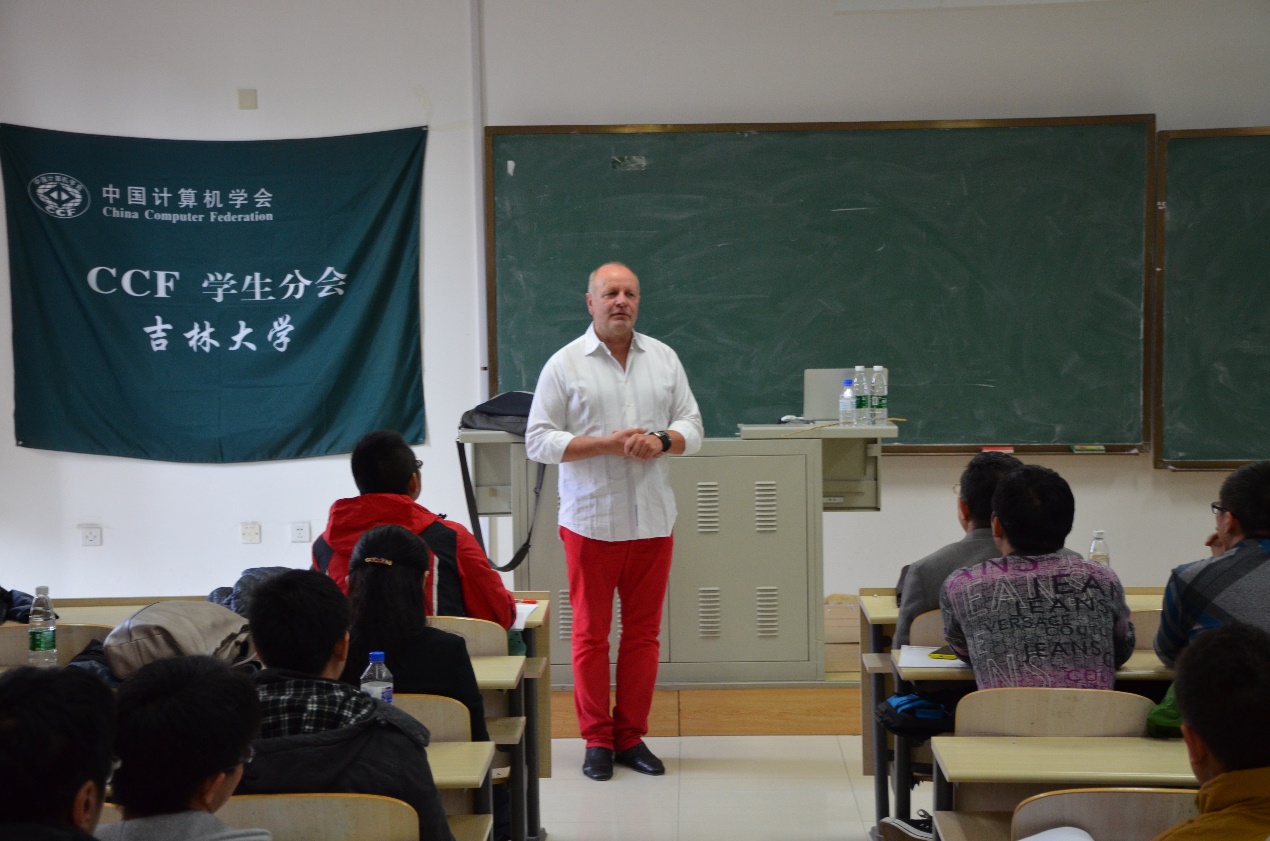 知识表示与知识推理是智能信息处理的基础,在计算机科学的众多领域有着广泛应用。2014年11月3日至4日,受三亿体育官网计算机公司副经理欧阳继红教授、计算机研究所副所长梁艳春教授的邀请,德国德累斯顿工业大学Steffen Holldobler教授来到公司为同学们做了知识表示与知识推理系列的学术报告。