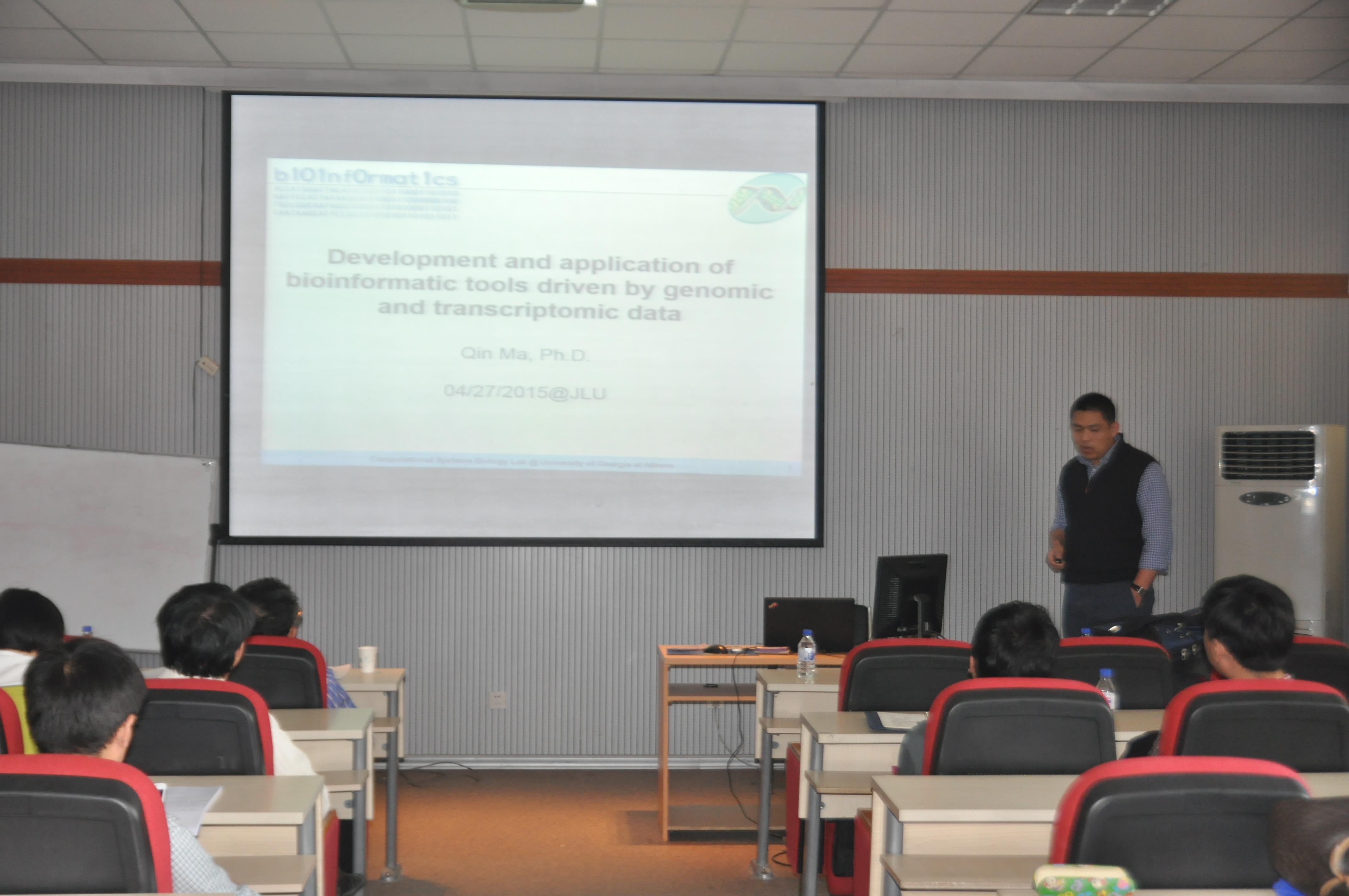 美国佐治亚大学系统生物学实验室马勤博士,应三亿体育的邀请,于2015年4月27日上午,为全校师生作了题为“基于基因组和转录组数据的生物信息学工具的开发与应用”的学术报告。讲座由计算机公司梁艳春教授主持。