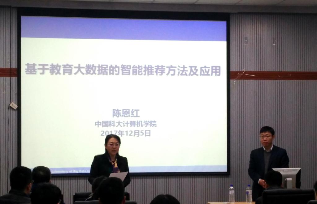 2017年 12月5日上午10点,三亿体育特邀中国科学技术大学陈恩红教授于计算机楼A521报告厅做了题为“面向智慧教育的数据挖掘技术研究与应用”的报告。计算机公司和软件公司近70名师生参加了报告会。