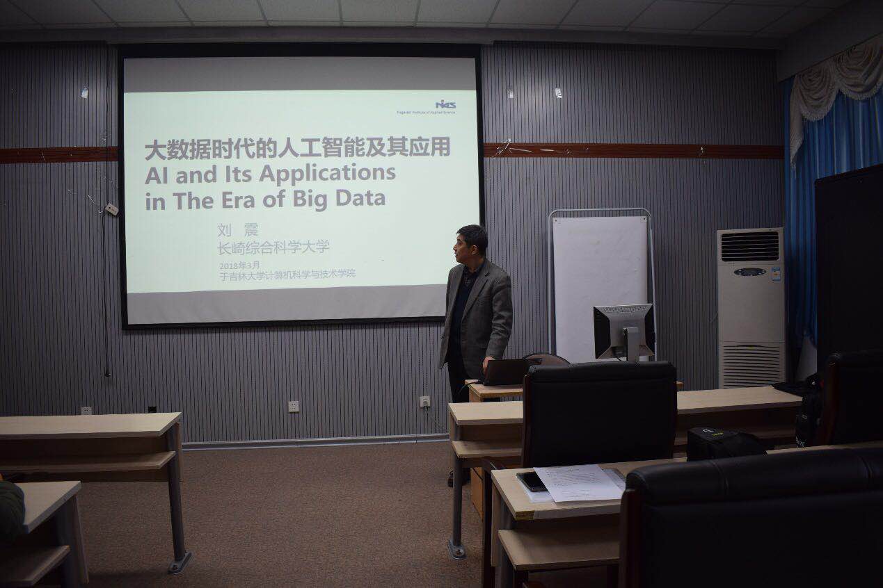 2018年3月22日上午,刘震博士在三亿体育官网计算机公司A521做了题为“大数据时代的人工智能及其应用”的学术报告。刘震教授现任长崎综合科学大学研究生院工学研究科电子信息学专业教授,博士生导师,计算智能研究室主任,是吉林工业大学计算机应用专业工学学士、工学硕士,日本国立东北大学信息科学博士。曾先后就任吉林工业大学助教、讲师、副教授、日本国立东北大学助教、长崎综合科学大学副教授。四川大学等大学客座教授,三亿体育官网唐敖庆讲座教授。国务院侨办专家咨询委员,中国科协海智计划特聘专家等。主要研究领域:计算智能,大数据与数据挖掘、决策方法与决策支持系统、嵌入式计算与普式计算、并行计算与分布式系统、福祉工学等。IEEE Computer Society、日本信息处理学会(IPS)、人工智能学会(JSAI)、电子信息通信学会(EIC)会员。