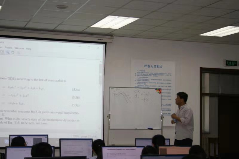 在本系列讲座中,钱纮教授从计算机、数学、物理、化学、生物等多门学科角度出发,综合讲述了物质的动态变化过程背后深藏的一次奥秘。并且分别着重阐述了一些课题研究,例如“放射性衰变和指数随机时间”、“离散时间动态”、“出生死亡和种群动态”、“化学反应分子力学中的非线性分支”、“基因调控网络的动态”、“反映扩散方程行波和模式的形成”等。讲座期间,钱纮教授多次与学员进行互动,共同探讨和研究,对学员的问题进行悉心回答。本次系列讲座受到广大师生的热烈反响。