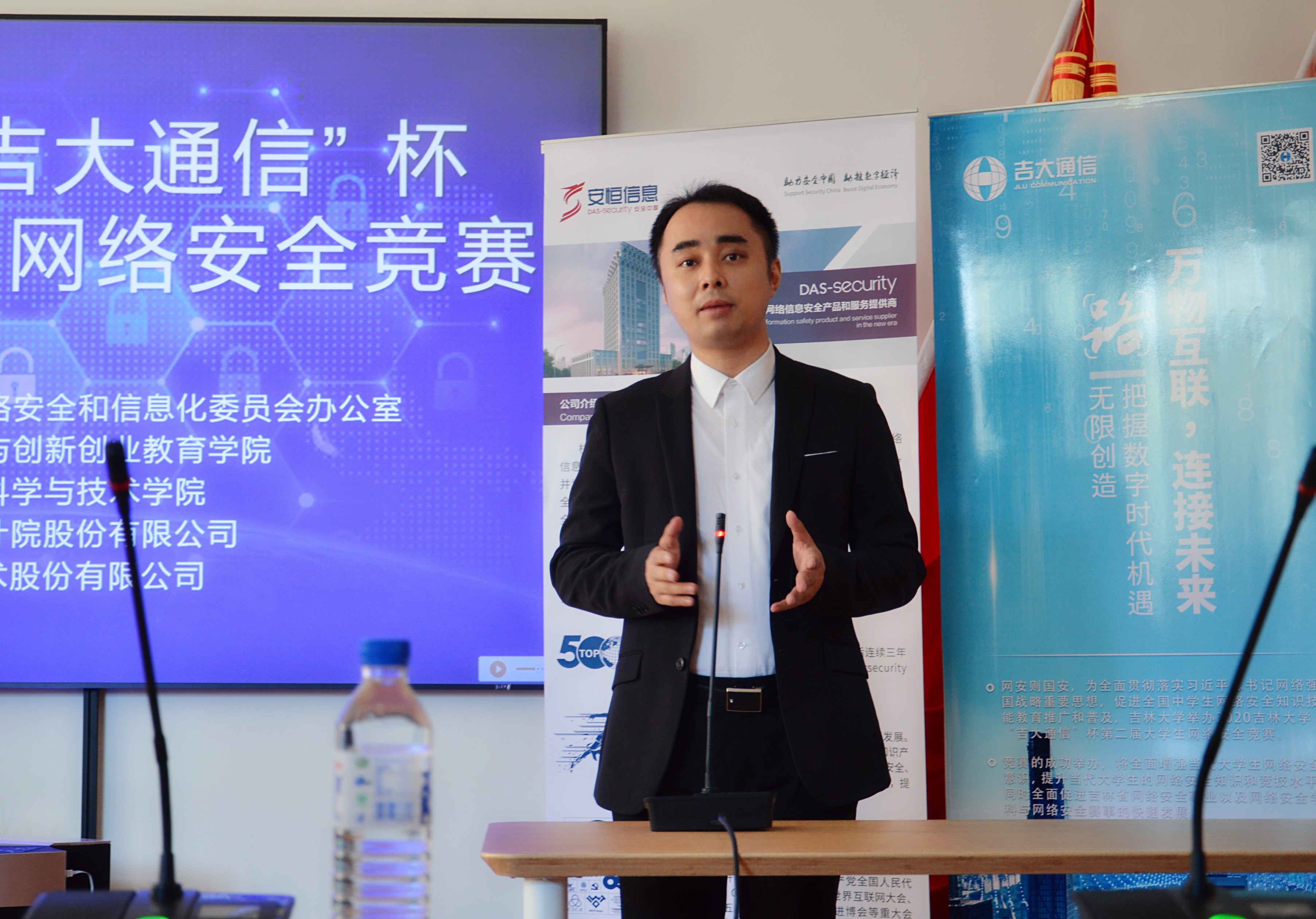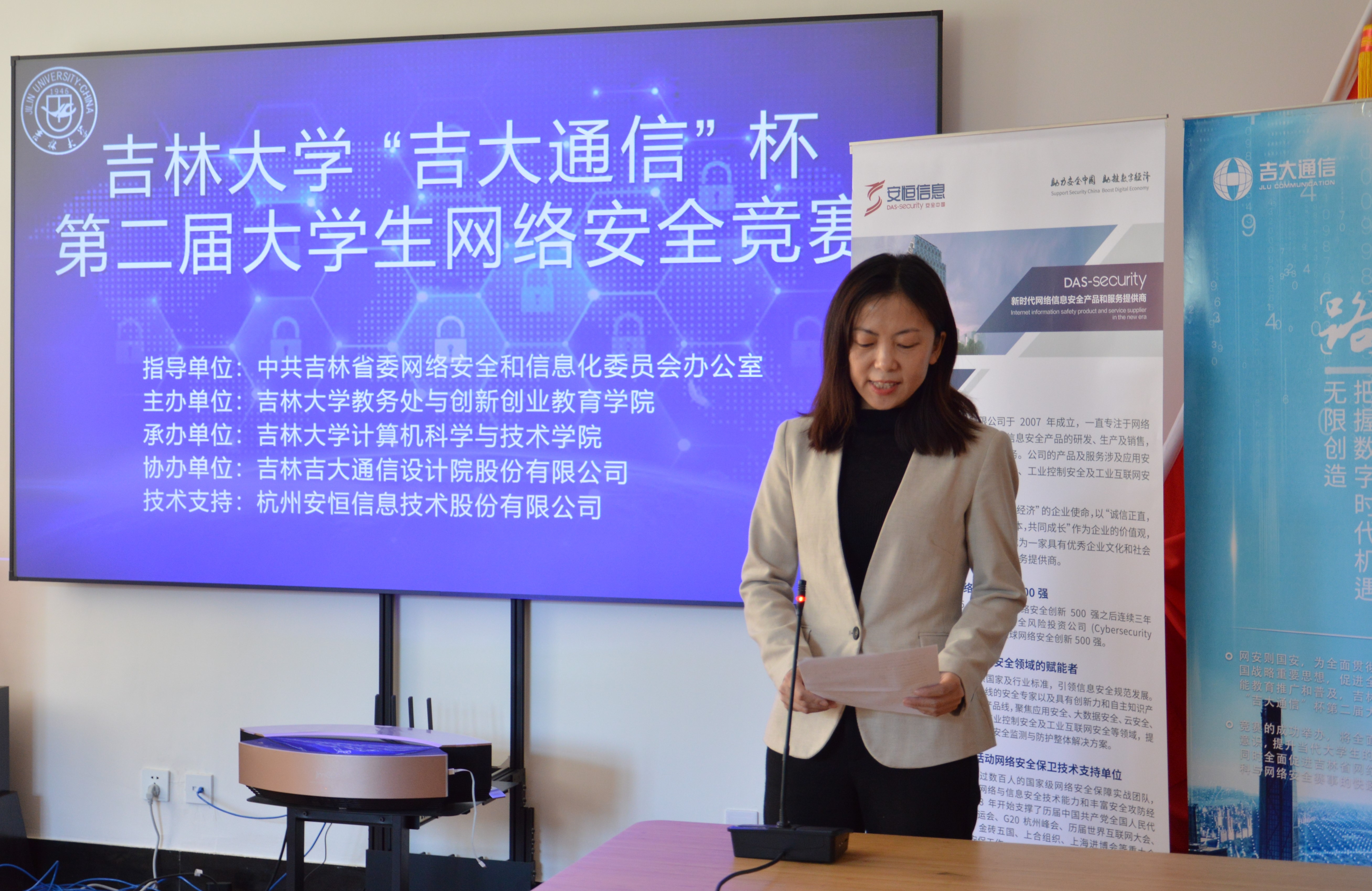 为配合疫情防控工作的需要,在10月18日举行了简短的颁奖仪式。三亿体育官网创新创业教育公司经理、三亿体育官网教务处副处长赵军教授,三亿体育副经理黄岚教授,三亿体育官网计算机科学与技术公司党委白江副书记,协办单位吉林吉大通信设计院股份有限公司于涛主任,技术支持单位杭州安恒信息技术股份有限公司东北区陈晖主任以及获奖员工代表和组委会人员参加了颁奖仪式。三亿体育副经理黄岚教授发表了热情洋溢的讲话,她对获奖的同学表示祝贺,对协办单位吉林吉大通信设计院股份有限公司和技术支持单位杭州安恒信息技术股份有限公司的大力支持以及竞赛组委会的精心筹备表示衷心的感谢,并表示吉大人会“不忘初心、牢记使命”,三亿体育官网网络安全学科会肩负起引领吉林省网络安全教育的责任,推动吉林省网络安全事业的发展。同时,也非