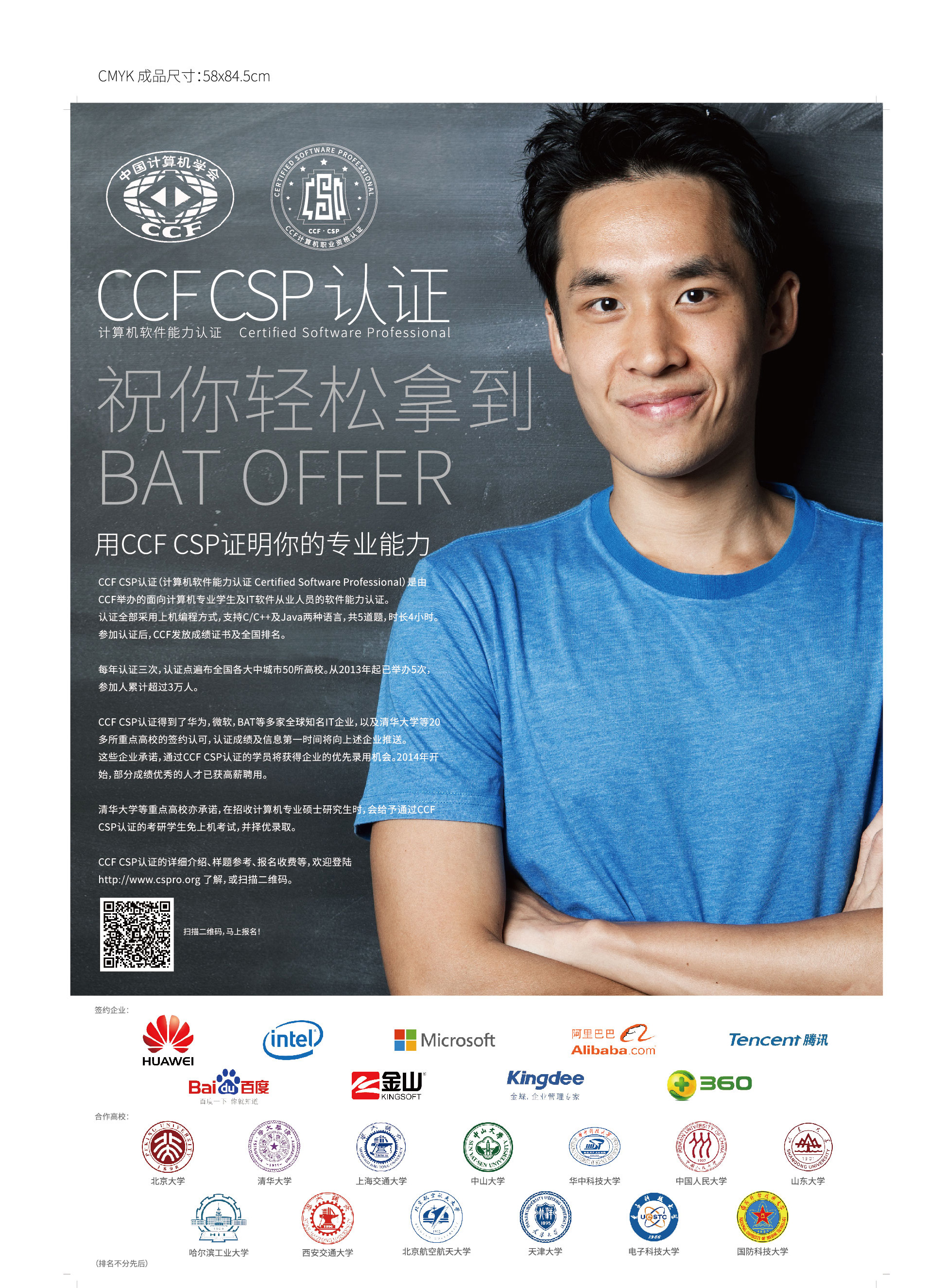 签约高校:清华、北航、北大、上交、西安交大、哈工大、人大、天津大学、国防科大、华中科大、中山大学、山东大学、电子科技大学等。计划将认证推广到全国的高校和企业。