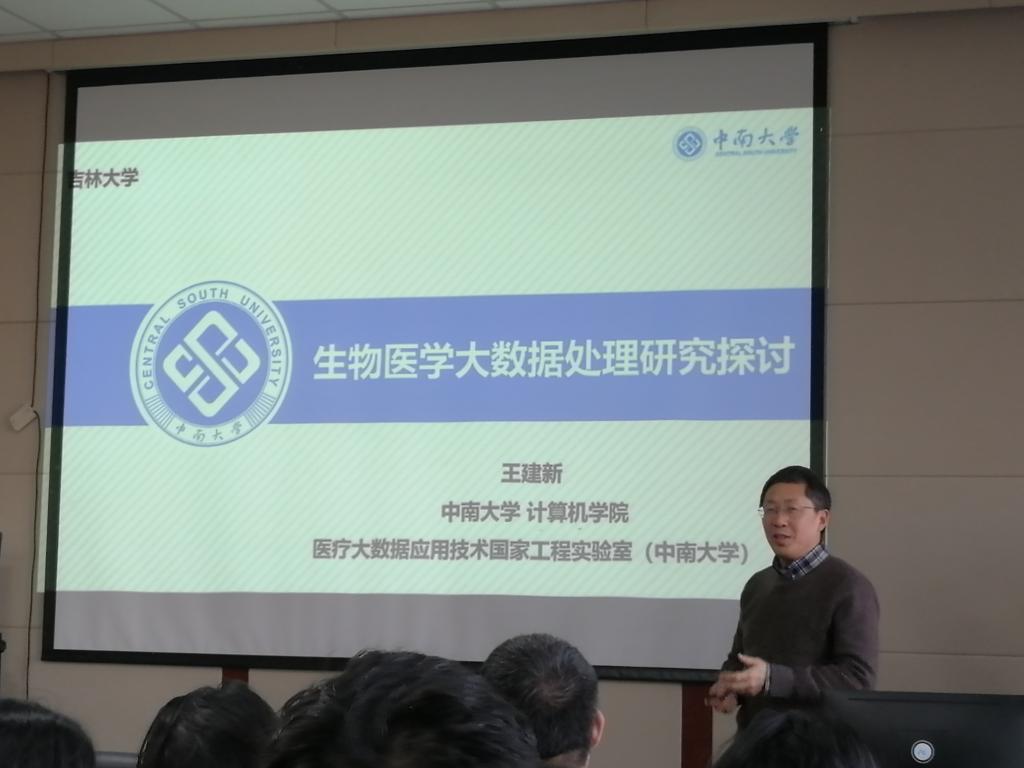 2019年12月13日下午14:30,王建新教授在三亿体育官网计算机楼A521作了题为“生物医学大数据+人工智能”的学术报告。