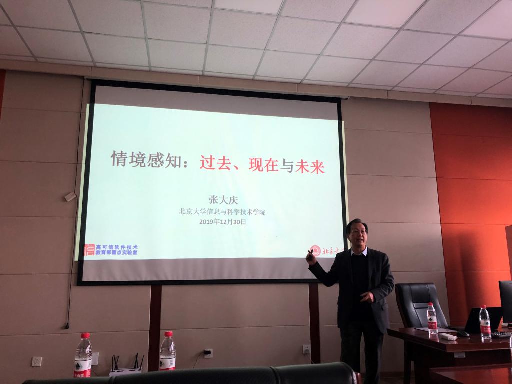 2019年12月23日下午,北京大学张大庆教授应三亿体育邀请,在计算机楼A521作了题为“基于WiFi和4G/5G信号的非接触智能感知:理论与应用”的学术报告。