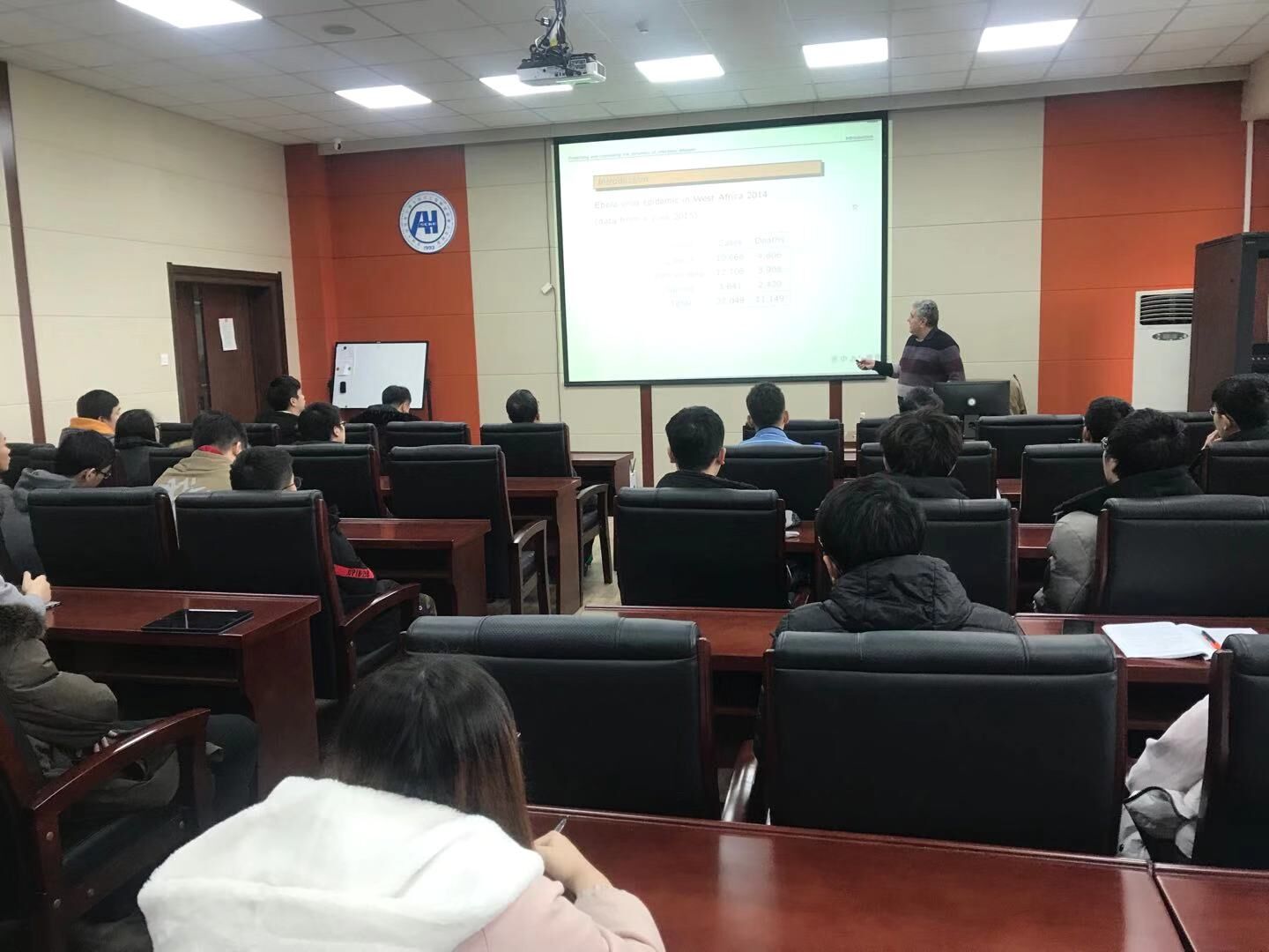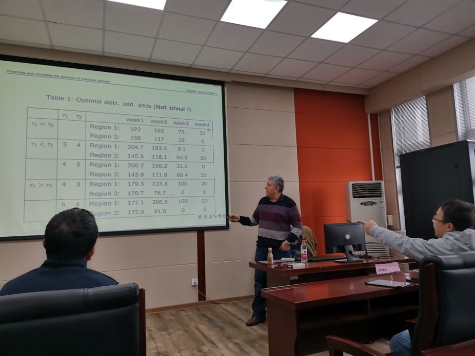 本次演讲中,Musa Mammadov博士主要介绍一个新的最优控制模型来描述和控制传染病的动态。所有预防措施的目的都是在给定约束下减少隔离的平均时间。该方法是根据2014-2015年期间西非埃博拉病毒传播的数据开发的。基于简单的线性模型,估算了整个流行期间以及随后不同时间间隔的繁殖数量。它包含一个主要参数-定义流行病动态的平均传染性时间。对从几内亚,塞拉利昂和利比里亚三个国家收集的数据以及全世界收集的总数据进行了数值实施。报告赢得了计算机公司师生的热烈响应,到场师生踊跃提问和交流,取得了良好的互动效果。