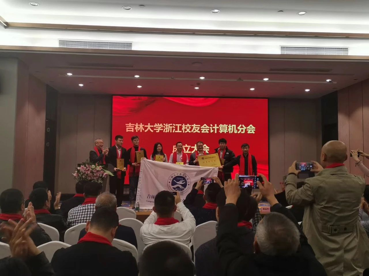 (计算机科学与技术公司党委副书记高战国、吉林大学浙江员工会秘书长吴建文共同为计算机分会成立授牌、授旗)