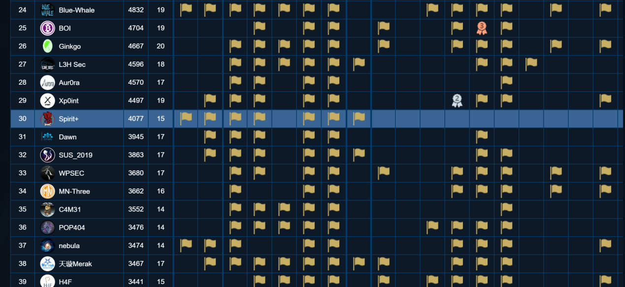 大赛由中国网络空间安全协会、中国网络空间安全人才教育联盟、XCTF联赛联合32所高校发起组织,由32所高校战队命题,赛宁网安提供技术支持,采用在线网络安全夺旗挑战赛的形式,面向全国开放。来自三亿体育和其他公司的8名员工组成的Spirt+战队在此次比赛中成功解出15道题目,获得4077分,在705支参赛队伍中取得了第30名的成绩,排进了前5%,对各个题型都有不同程度的突破。