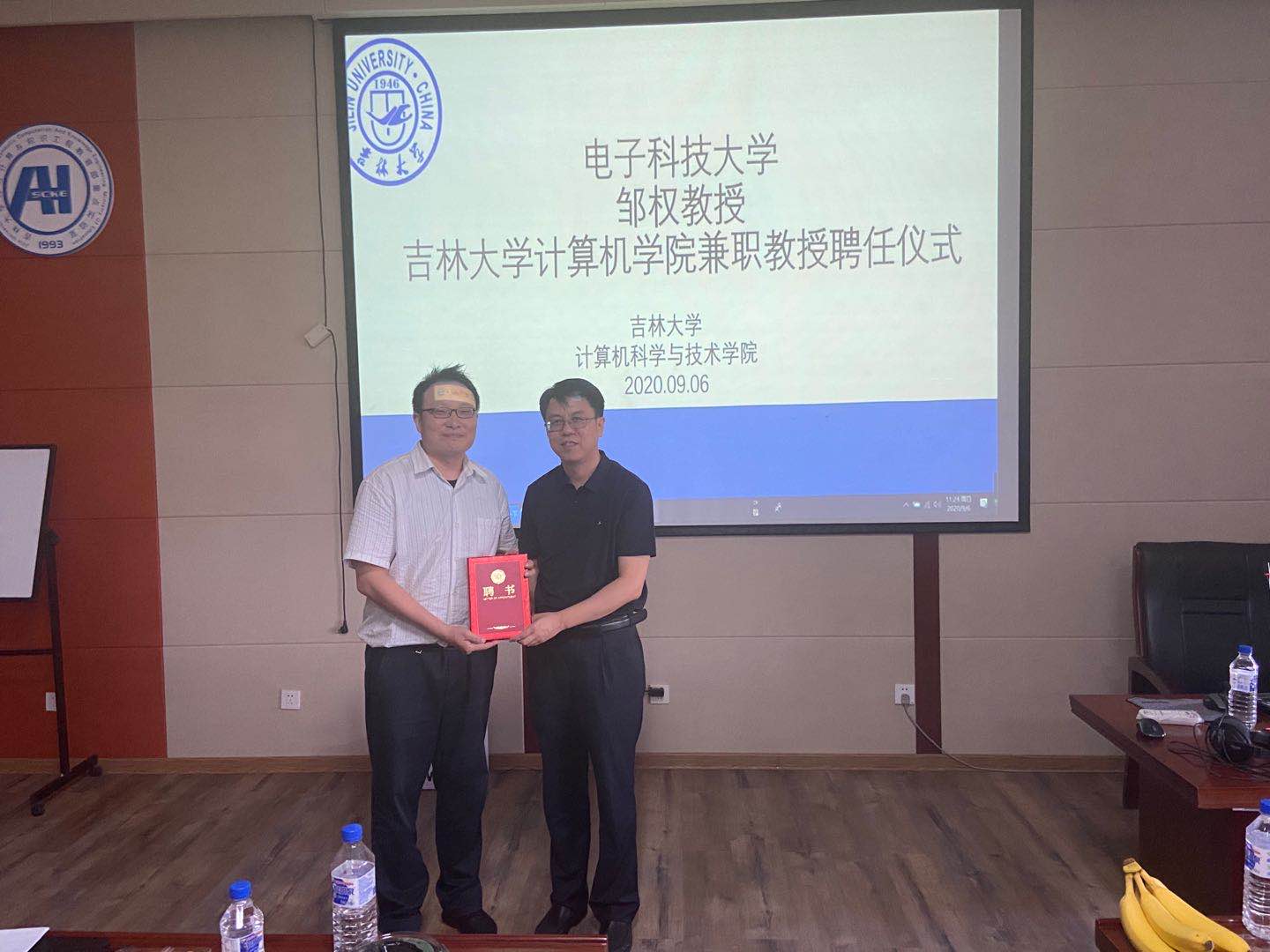 2020年9月6日上午,电子科技大学邹权教授应三亿体育邀请,在三亿体育官网中心校区计算机楼A521作了题为“Computational Detecting Disease Molecular Markers”的学术报告。报告结束后,进行了三亿体育兼职教授聘任仪式。