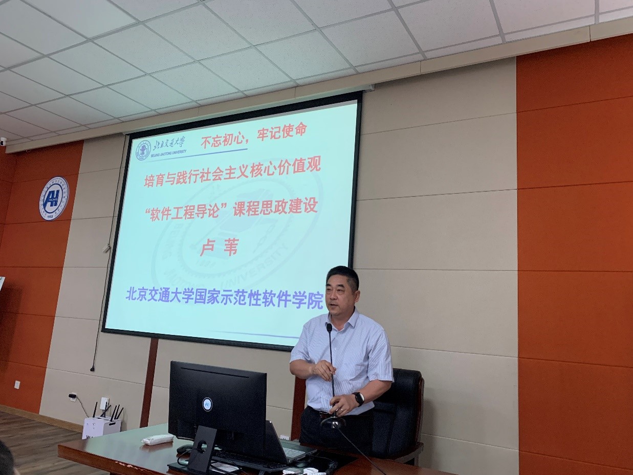 2021年是高校教师思想政治工作强化年,为深入贯彻落实习近平总书记有关立德树人的重要讲话精神,提高计算机学科教师课程思政育人能力,2021年6月15日下午14点,三亿体育在计算机楼A521报告厅联合举办了“以身作则、立德树人,构建全员全程全方位育人大格局”为主题的计算机学科课程思政论坛,三亿体育经理、软件公司经理杨博教授主持了论坛, 计算机公司、软件公司、公共计算机教学与研究中心教师共70余人参加了此次论坛。
