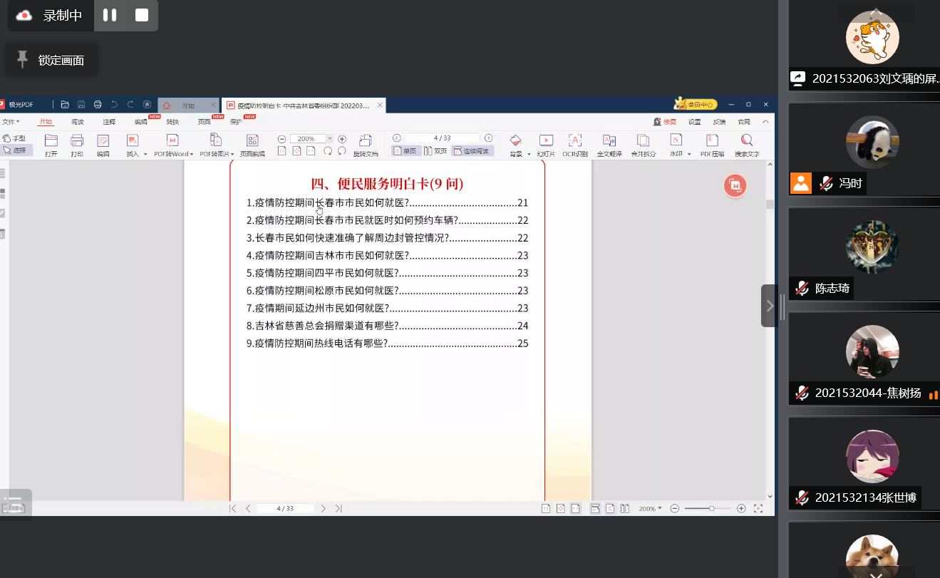 其中刘文瑀同学提到他非常感谢自己的导师,老师在第一时间关注在校的同学的身体情况,让大家保持好心情,还有专业课老师对病毒知识的讲解都让他对疫情有了更深的了解,老师的关怀也让他十分温暖。王伟任同学则提到本科同学在知晓吉林的疫情很严重,联系了当地员工会捐钱捐物的事情。让他印象深刻的地方是这名同学家在贵州,他的本科专业是地质工程,在当时很多人都没有选择这个专业,都是调剂到这个专业的。但是这名同学是自己选的,有一次他问这名同学为什么,这名同学提到因为家庭的原因,他的一些学费都是当地家乡的政府资助的。而且在云南贵州那边,每年雨季都会有很多的泥石流灾害,他之所以选这个专业,就是想毕业之后回到家乡,能为家乡做出一点贡献。而且他提到这名同学整个大学他都很努力,毕业也没有丝毫的犹豫,回到了家乡。因为在吉大学了很多的知识,所以当吉大有困难的时候,他尽自己的努力去帮助母校。这名吉大员工的故事深深感动了大家,人与人之间的这种善意和正能量是真的在传递的,我们也为能有这样优秀的员工自豪。