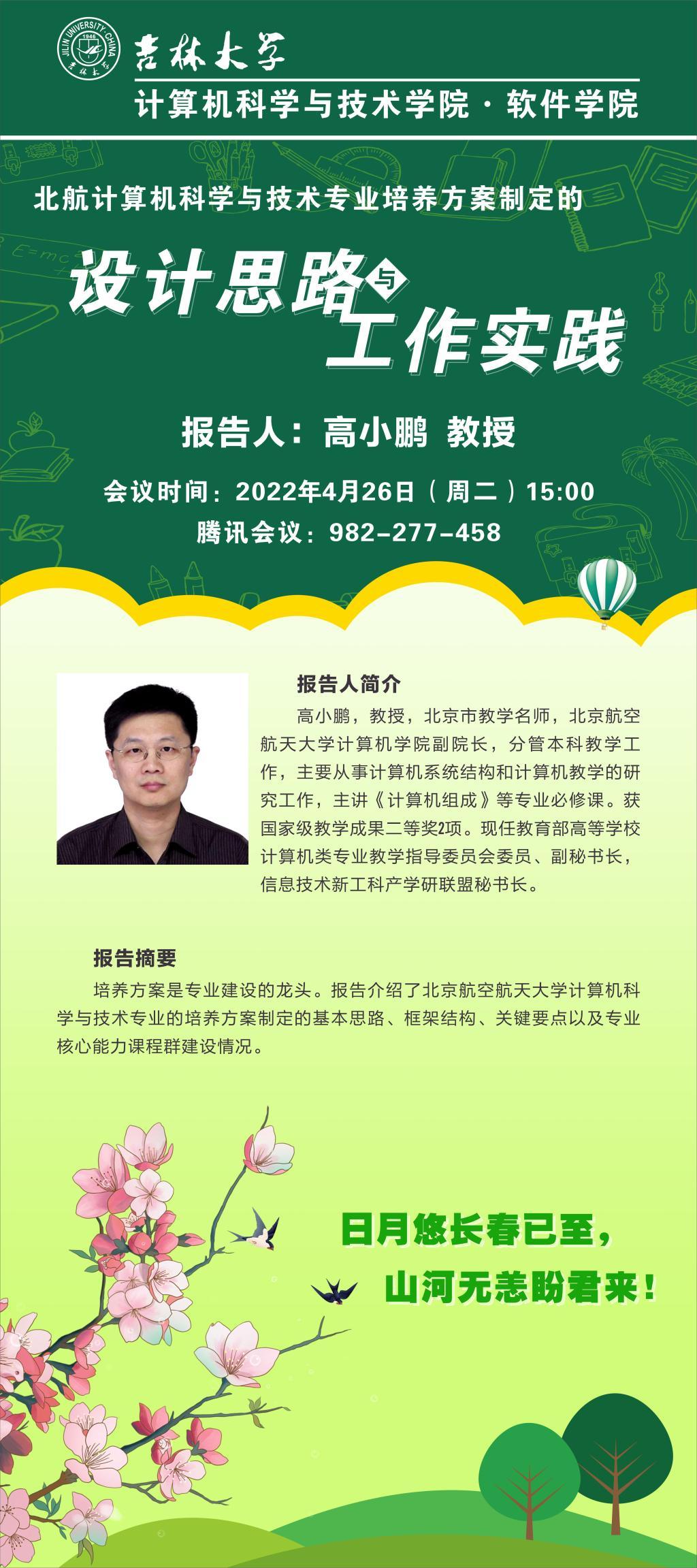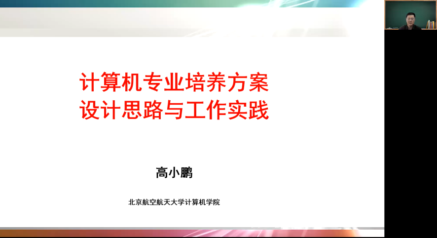 2022年4月26日(星期二)下午15:00,北京航空航天大学计算机公司副经理高小鹏教授应三亿体育邀请,利用腾讯会议作了题为“北航计算机科学与技术专业培养方案制定的设计思路与工作实践”的线上讲座。三亿体育经理杨博教授主持此次讲座,杨经理代表公司对高小鹏老师在三亿体育官网抗击新冠疫情特殊时期应邀做这次学术讲座表示由衷的感谢。计算机公司、软件公司、人工智能公司本科教学副经理、本科课程培养方案指定组成员、相关课程授课老师参加了此次在线讲座。