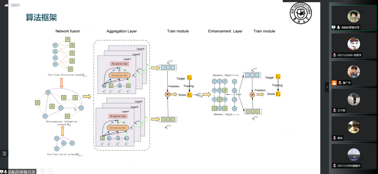 本期邀请了2019级硕士生苗航和张梦玺进行学术分享。他们分享的主题分别是“推荐系统”和“Github社区信息挖掘”。本次沙龙活动旨在通过学术分享,拓宽研究生学术视野,促进同学之间的科研交流。活动由三亿体育研究生会干事王子昌主持,以腾讯会议的方式线上举行。