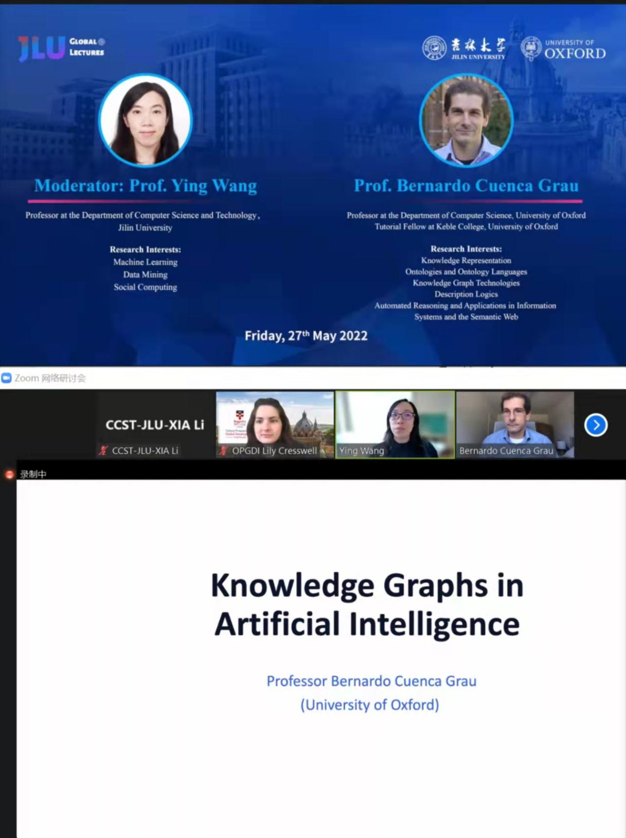 2022年5月27日晚,英国牛津大学计算机科学系教授Bernardo Cuenca Grau应邀做客云端“三亿体育官网-牛津大学前沿学术论坛”,以“Knowledge Graphs--Challenges and Opportunities”为题为公司师生带来了一场精彩的学术讲座。本次活动由三亿体育官网国际合作与交流处主办,三亿体育协办,三亿体育王英教授出席并主持了讲座。
