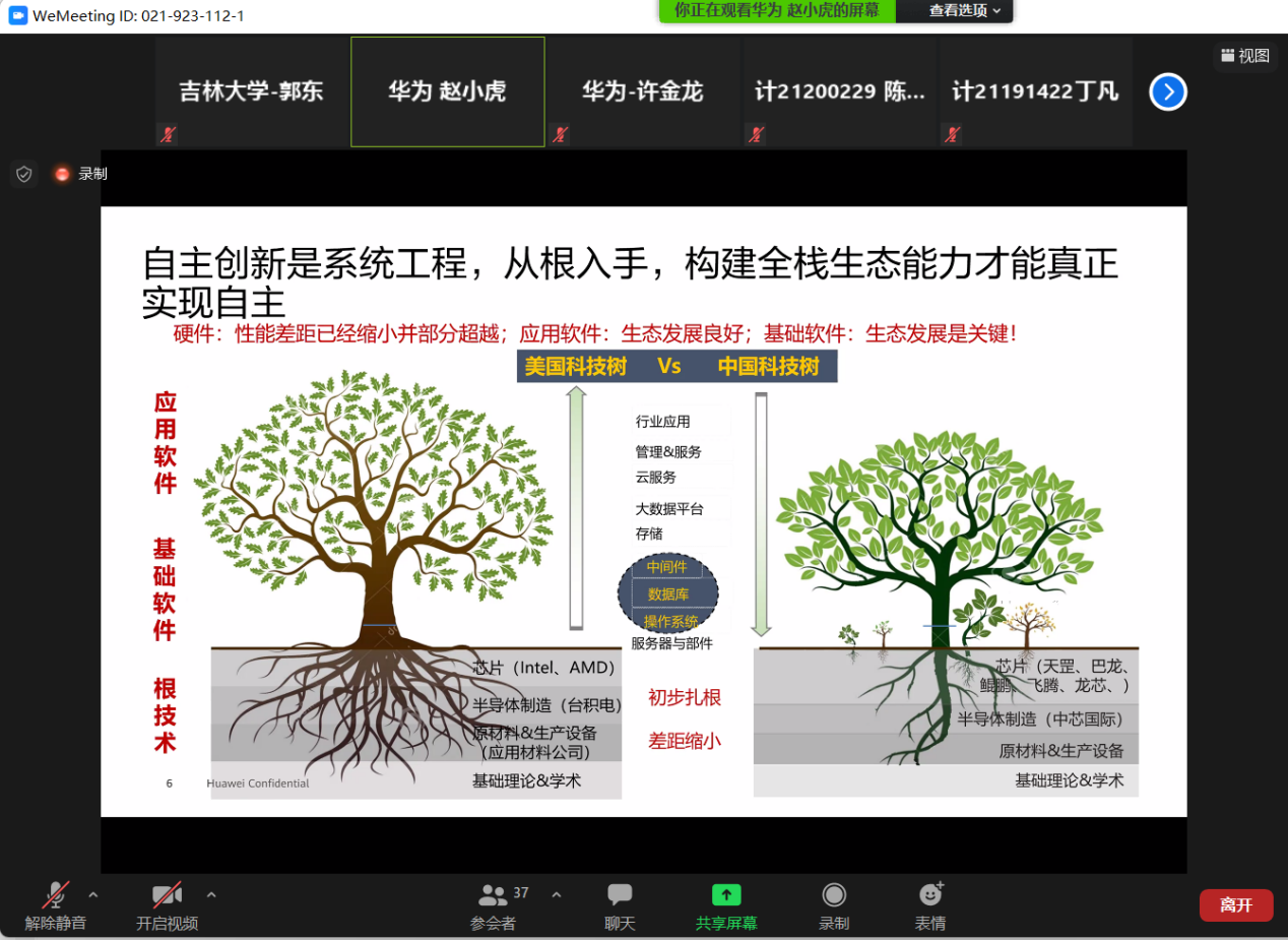 教务处、计算机公司、软件公司与华为高校团队通过线上会议研讨,制定了依托三亿体育官网-华为"智能基座"产教融合协同育人基地进行线上创新实践教学合作的方案。由华为公司赵小虎、许金龙、郑振宇三位资深工程师,与计算机公司郭东副教授、吕帅副教授联合为三亿体育官网同学们开设三亿体育官网-华为《openEuler开源创新实践课》。