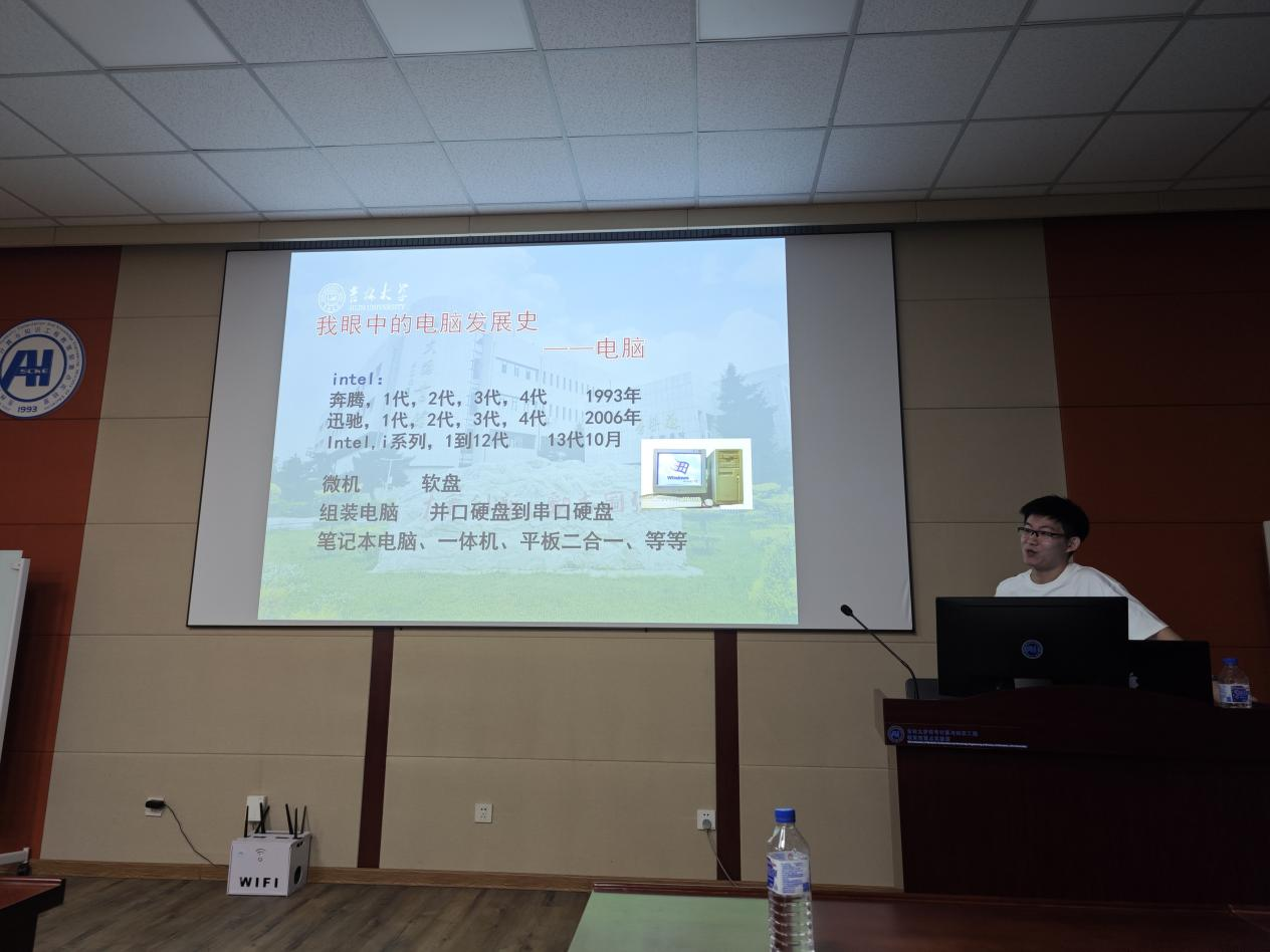 讲座开始后,肖明员工首先对自己的从业经历进行了介绍,讲述了自己选择当前职业的原因。随后,肖明员工从CPU、硬盘等方面对电脑的发展史进行了讲解。在电脑日常出现的问题中有60%为系统性故障,发生故障的原因有90%是个人使用问题。在电脑的保养方面,要定期清灰、做散热;使用完电脑后要正常关机;平时放在包里不要挤压等。在电脑选购方面,优选台式机;选择比较知名的品牌等。最后,肖明员工讲述了在做事情时不要只注重眼前的利益,而更应该去考虑自己的爱好,把时间放得久一点,专注于长期目标,让自己能够有更好的收获。