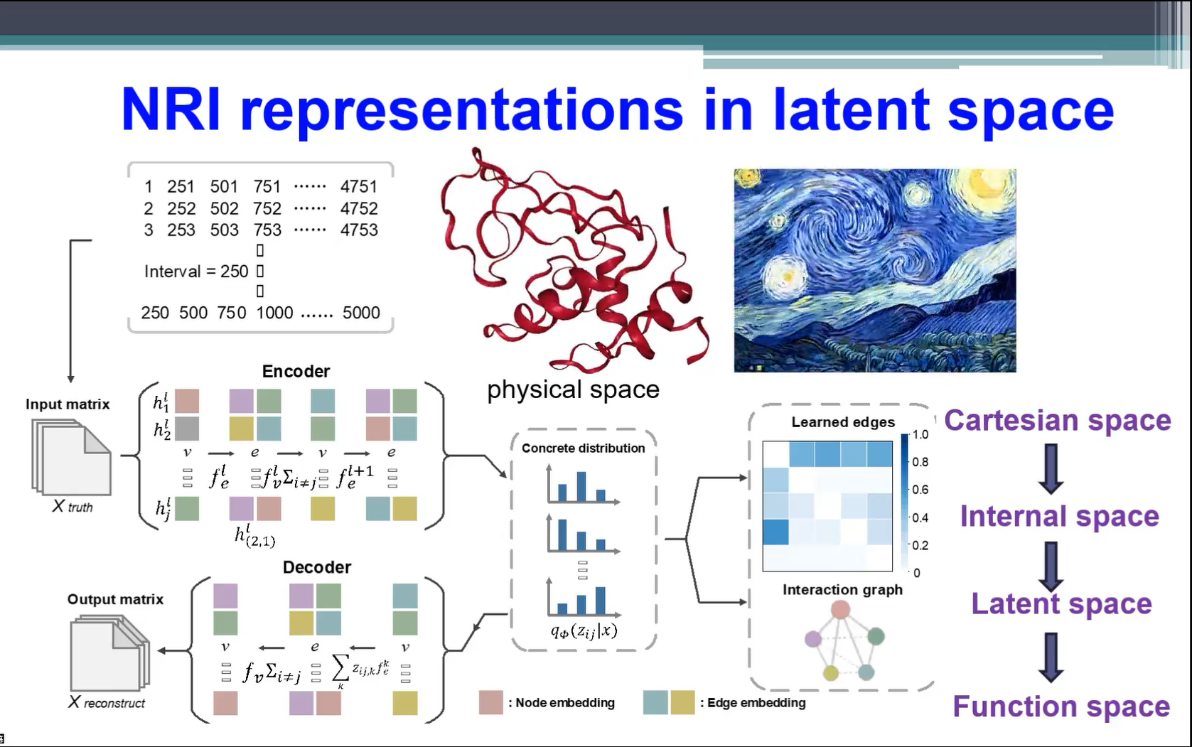 许东教授又接着分享了他对于为什么深度学习会能够帮助于分子动力学分析的观点。对于分子动力学这样一个高维的时间序列,通过embedding就能得到一些底层的模式;NRI模型在一定程度上就达到了这样的功能。