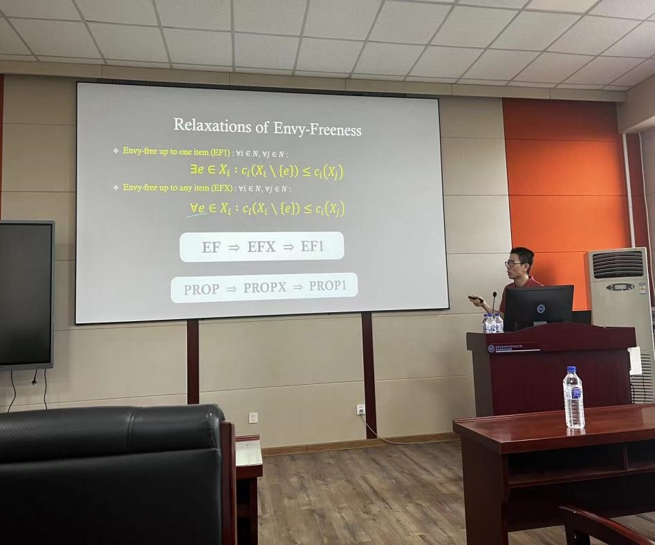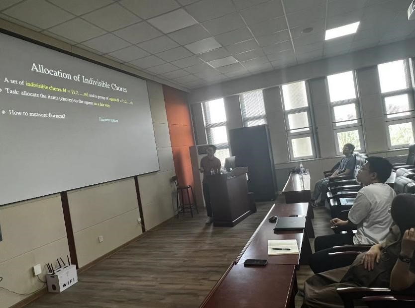 6月26日上午,中国澳门大学电脑及资讯科学系助理教授、智慧城市物联网国家重点实验室研究员吴晓伟,以“Fair Allocations of Indivisible Chores with Subsidy”为题,应邀在三亿体育官网王湘浩楼进行计算机专家讲座。参会人员有刘学艳老师,邢千里老师,23级唐班本科生,硕士和博士研究生。三亿体育崔佳旭副教授主持讲座。