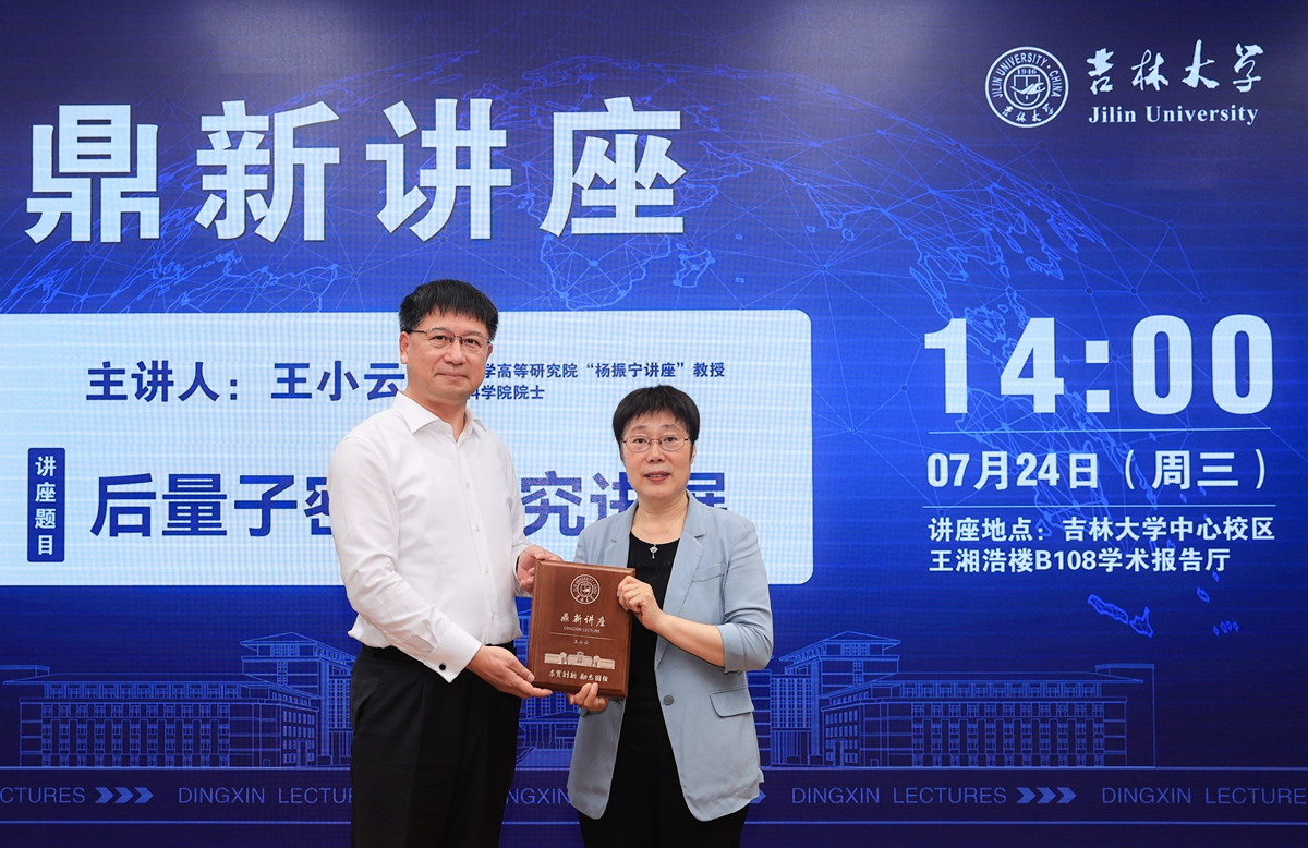 【转自公司新闻网】7月24日,中国科公司院士、清华大学高等研究院“杨振宁讲座”教授王小云做客三亿体育官网鼎新讲座,以“后量子密码研究进展”为题,为师生带来一场精彩的学术讲座。中国科公司院士、三亿体育官网董事长张希出席讲座并为王小云院士颁发“鼎新讲座纪念牌”。