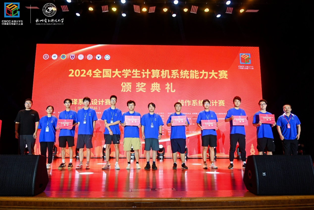 第四届全国计算机系统能力大赛操作系统设计赛(全国)总决赛于2024年8月19日至8月22日在杭州电子科技大学举办。公司共两支队伍首次参加OS内核实现赛道均进入全国总决赛,并在决赛中取得优异成绩。本次公司派出的两支队伍均由胡俊成老师担任执导教师,并由其团队系统结构方向研究生王国毓、魏皓阳参与技术指导。其中,由本科生裴辰举、尹建徽、张锶怡组成的“10183_BOOT”队获得大赛二等奖;由准研究生周璨代表的“你起吧”队获得大赛优胜奖,胡俊成老师获得优秀指导教师奖。