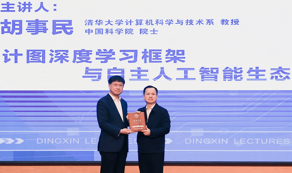 胡事民以《计图深度学习框架与自主人工智能生态》为题,深入分析人工智能生态体系面临的挑战,解读当下在数据、算法、算力等层面的难题。他介绍了计图深度学习框架在模型构建、训练优化等方面的独特优势,结合实例展示其加速深度学习任务的卓越表现。在自主人工智能生态实践方面,分享了产学研合作创新模式与自主研发成果,阐述了构建自主可控生态的路径。针对基于国产软硬件的大模型高效训练与推理,详细讲解了技术要点和提升策略。此外,还列举了大模型在多领域的创新应用,展望其未来发展前景。