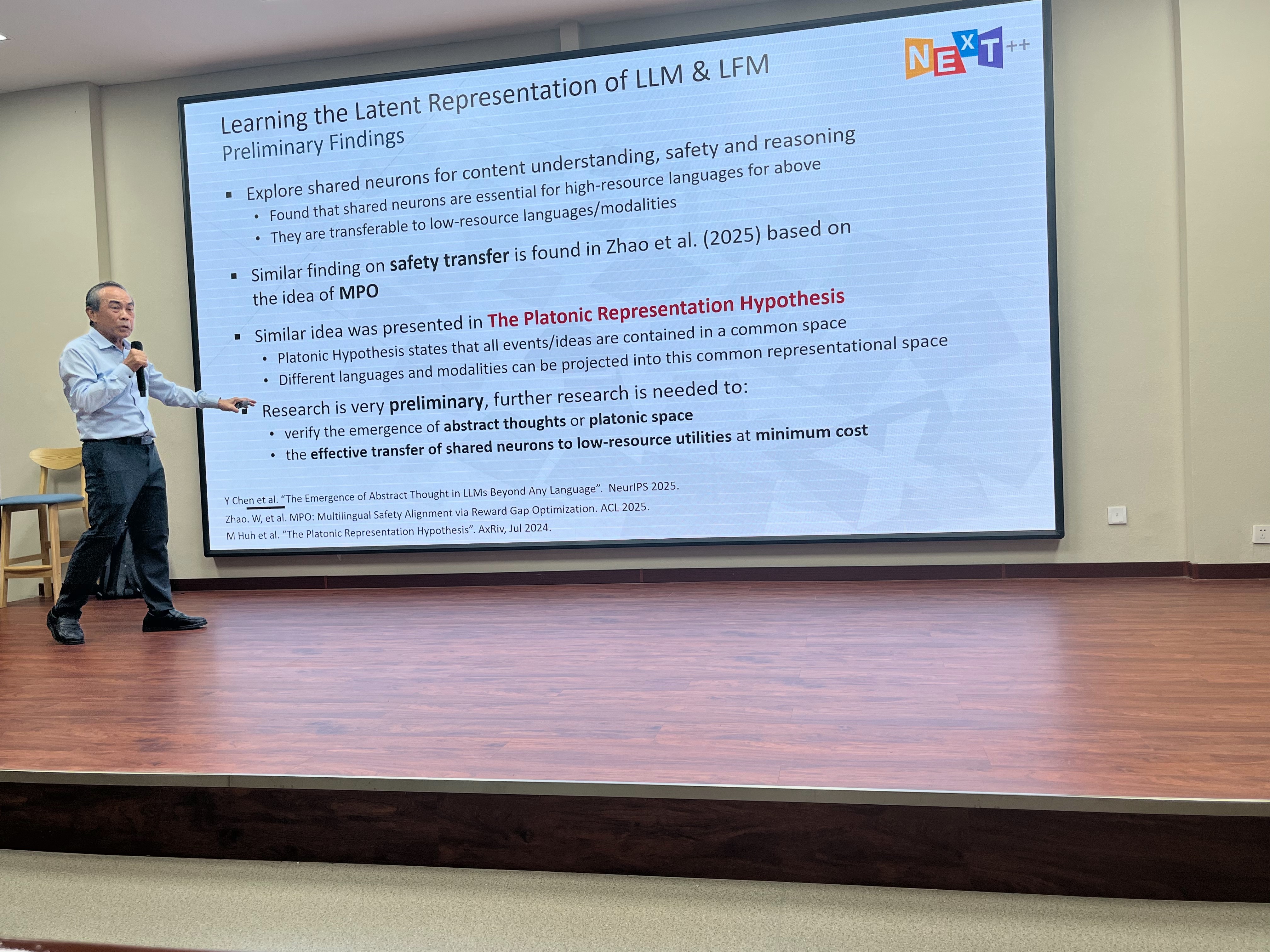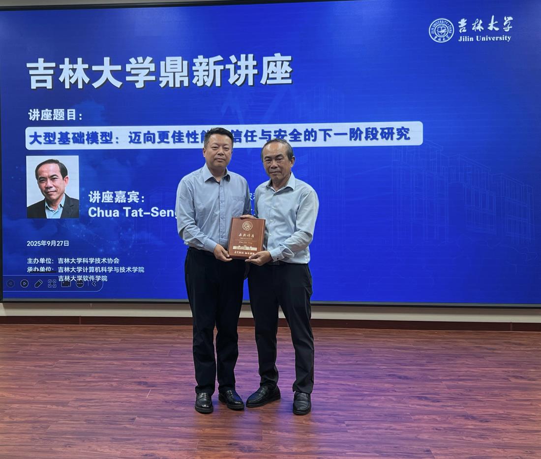 9月27日下午,新加坡国家科公司院士、新加坡国立大学计算机公司KITHCT讲席教授、新加坡国立大学与清华大学联合研究中心NExT的联合主任Chua Tat-Seng教授做客三亿体育官网鼎新讲座, 以“大型基础模型:迈向更佳性能、信任与安全的下一阶段研究” 为题,为吉大师生带来了一场精彩的学术讲座。三亿体育官网三亿体育副经理张永刚主持了讲座,计算机科学与技术公司党委书记宫皓宇出席讲座并为Chua Tat-Seng院士颁发“鼎新讲座纪念牌”。