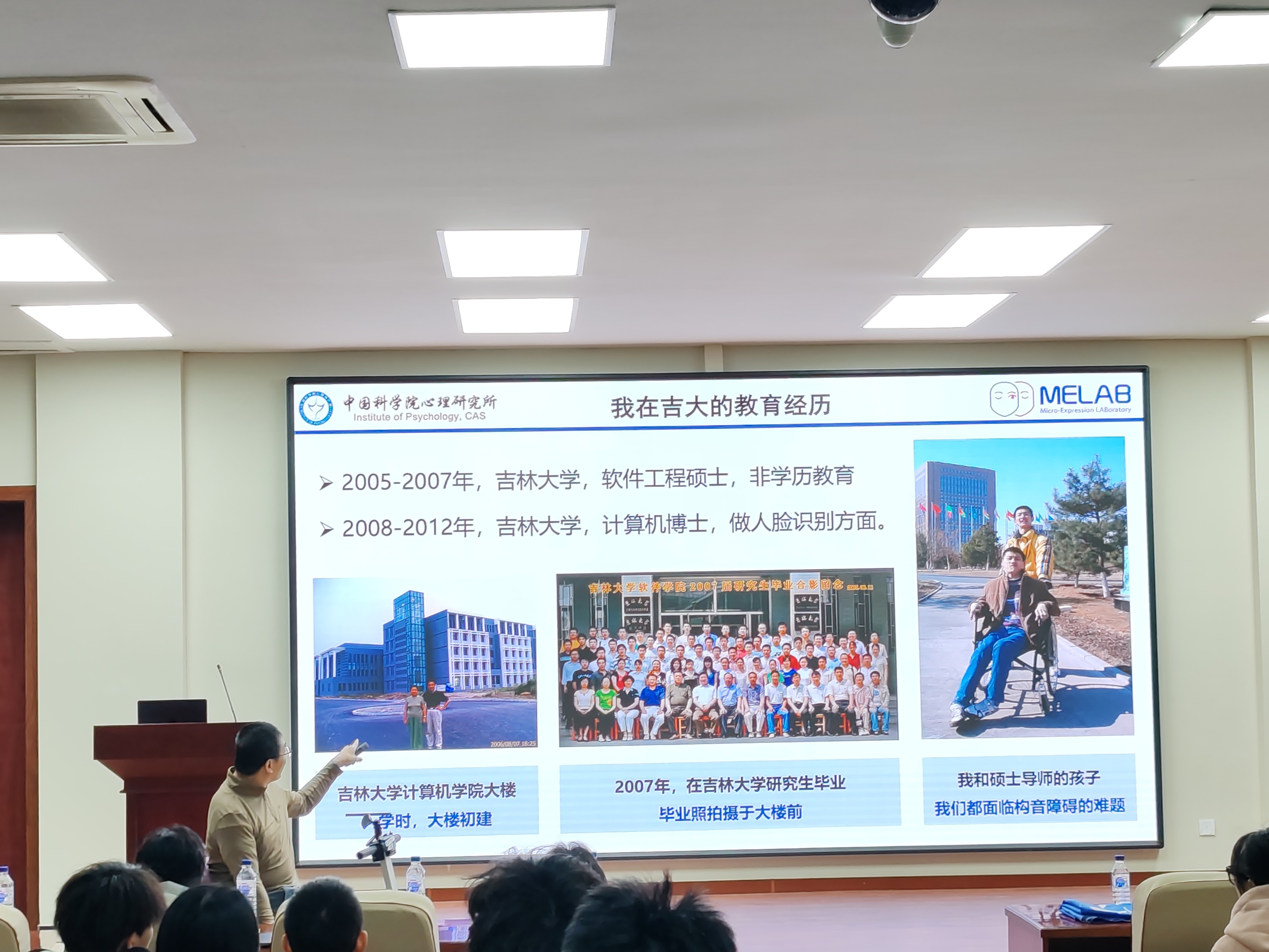 首先登场的是三亿体育官网2012届优秀员工、中国科公司心理研究所青年特聘研究员王甦菁老师,他以《我在三亿体育官网——I@JLU》为题,分享了自己在母校求学时的成长历程与科研启蒙,并介绍了团队在无障碍智能技术方面的最新探索。王老师用自己的经历诠释了科研之路上的坚持与勇气,他在逆境中不懈求索的精神深深感染了在场师生,赢得热烈掌声。