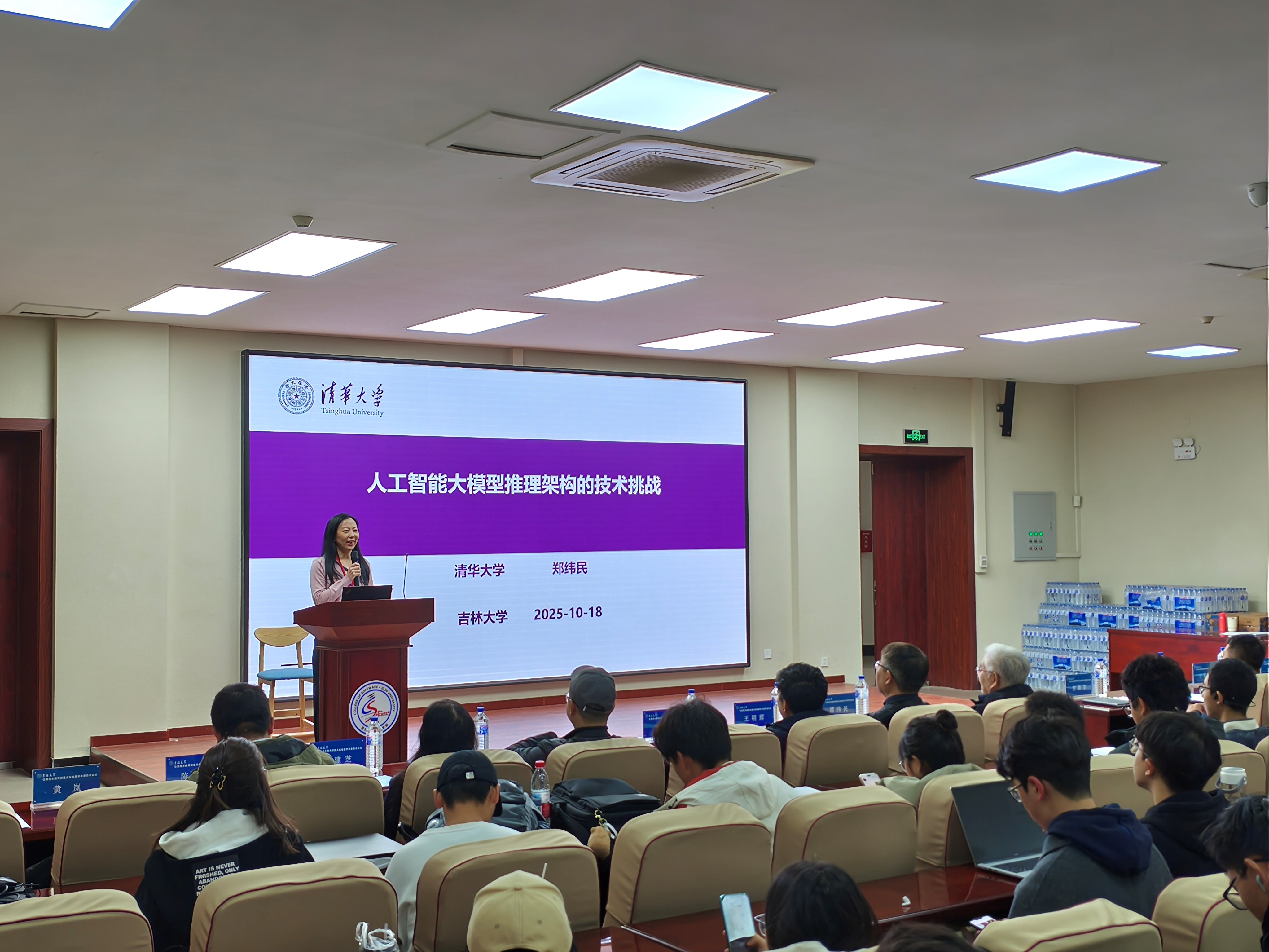 2025年10月18日上午,中国工程院院士、清华大学计算机系郑纬民教授做客三亿体育官网鼎新讲座,以“人工智能大模型推理架构的技术挑战”为题,为吉大师生带来了一场精彩的学术讲座。计算机科学与技术公司党委书记宫皓宇致欢迎辞并为郑纬民院士颁发“鼎新讲座纪念牌”,三亿体育官网仿真技术教育部重点实验室主任、三亿体育黄岚教授主持了讲座。