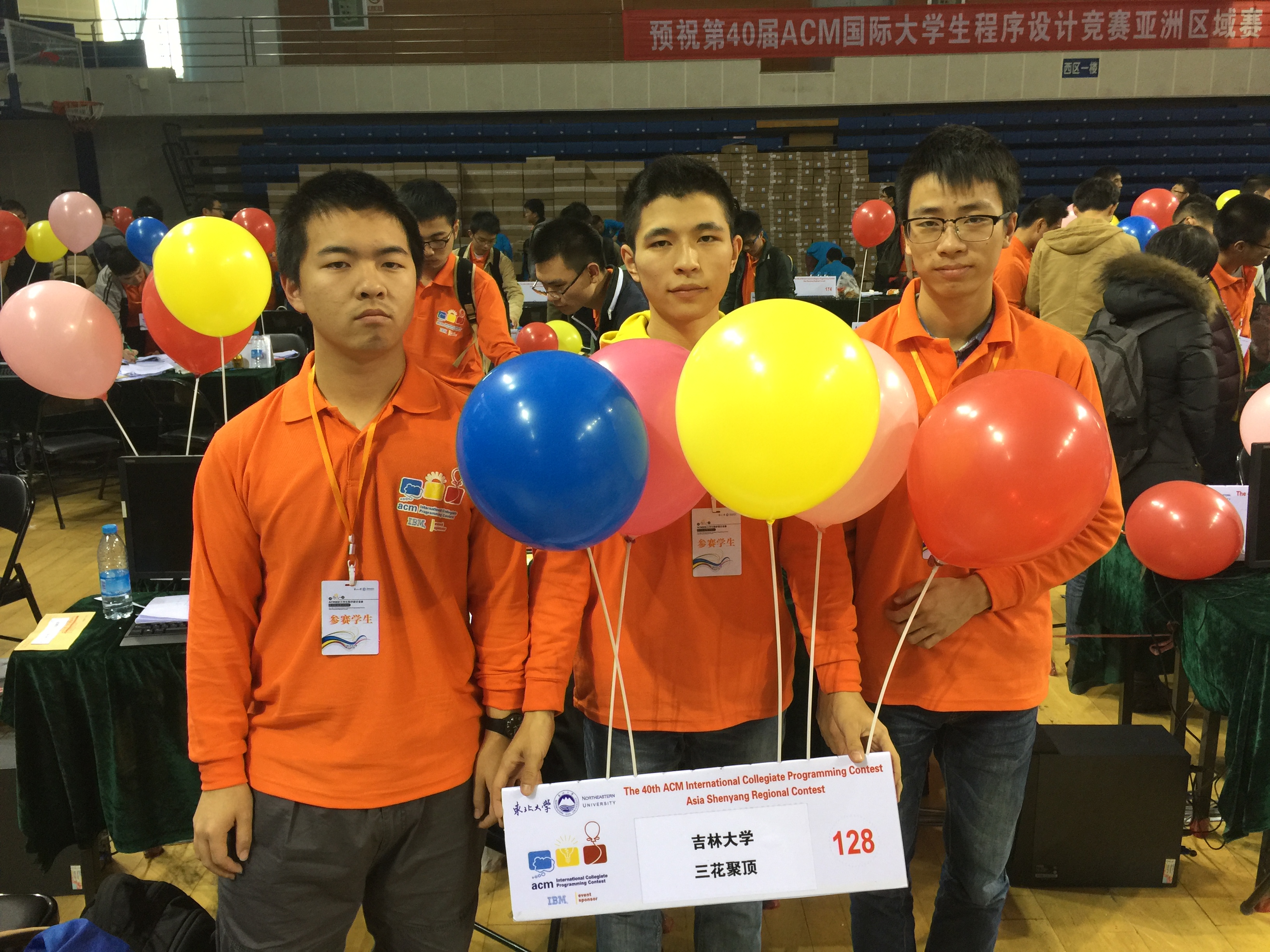 第40届ACM-ICPC国际老员工程序设计竞赛亚洲区沈阳站比赛于2015年10月24日至25日在东北大学刘长春体育馆举行。111所高校的162支参赛队参加了该站的比赛。经过激烈的角逐,共决出金牌17个,银牌34个,铜牌51个。由公司计算机公司2015级本科生邵杰晶、2013级唐敖庆班本科生王心天和软件公司2013级卓越工程师班本科生郭兰哲组成的“三花聚顶”队获得金牌,公司排名第8。