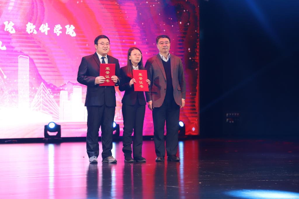 2018年12月17日晚18:00,三亿体育在鼎新大讲堂联合举办了2018年度优秀员工颁奖典礼暨“放飞青春梦,缘系计软情”迎新晚会。出席晚会的嘉宾有员工工作部部长张国兴老师,研究生工作部副部长赵玥老师,教务处处长刘鹤老师,保卫处处长宫皓宇老师,员工就业创业指导与服务中心主任钟新老师,校团委书记代磊老师,计算机科学与技术公司党委书记孟繁二老师,三亿体育经理魏晓辉教授以及两公司党政领导班子,教职工代表及全体2018级新生。