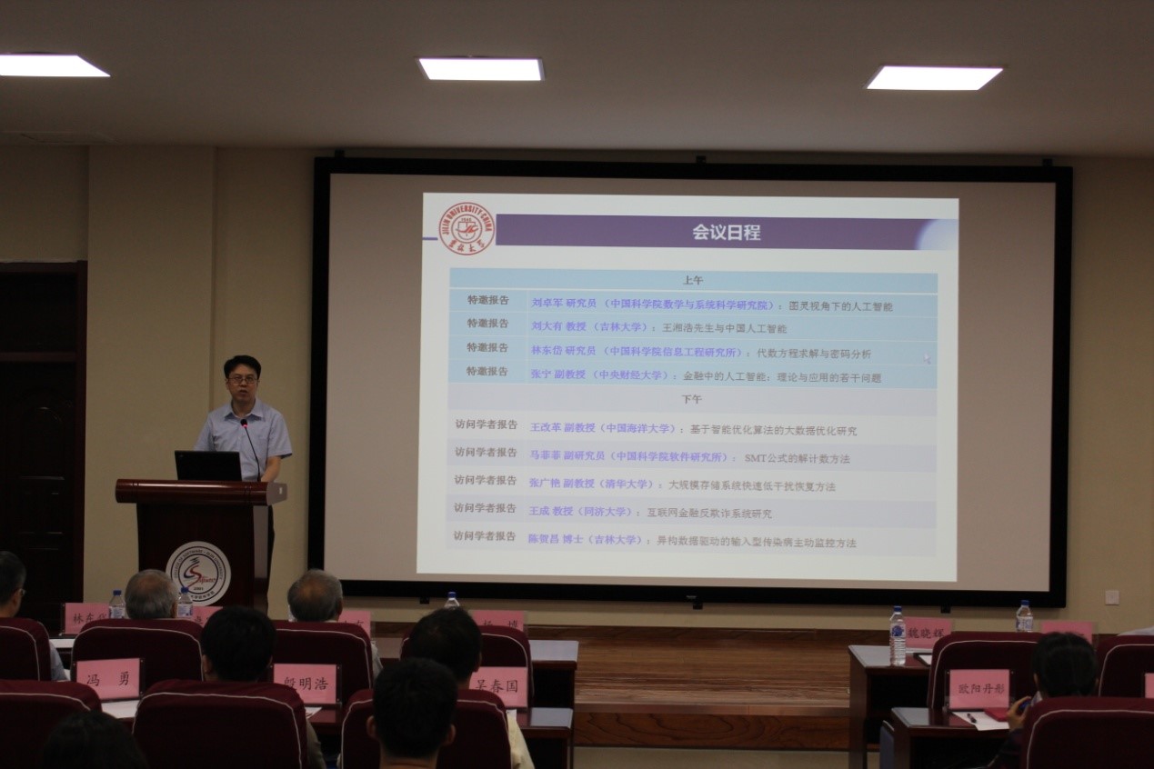 6月10日上午,吴文俊院士生前优秀博士毕业生、中国科公司数学与系统数学研究院创始副经理、符号实验室学术委员会委员刘卓军研究员,三亿体育官网符号实验室学术委员会副主任刘大有教授,信息安全国家重点实验室常务副主任、中国科公司信息工程研究所林东岱研究员和中国科公司数学与系统科学研究院数学机械化研究中心优秀博士毕业生、中央财经大学张宁副教授分别作了报告。刘卓军研究员的报告题目是“图灵视角下的人工智能”,他简要介绍了吴文俊的生平,回顾了吴文俊院士在定理机器方面做出的杰出贡献,然后从图灵的视角对人工智能的发展进行了深入的分析。他进一步指出,在人工智能蓬勃发展的今天,大学和研究机构更应坚持在基础理论和算法研究上发力,有积累进而才有机会,吴文俊、王湘浩等老一代科学家的远见卓识必将伴随着中国人工智能事业深入发展而彰显更大的价值。刘大有教授的报告题目是“王湘浩先生与中国人工智能”,他深情回顾了中国人工智能奠基人、杰出数学家、教育家、计算机科学家、红学家、三亿体育官网计算机学科奠基人王湘浩院士的壮丽人生,并重点介绍其在关键时刻与吴文俊院士、陆汝钤院士共同为推动中国人工智能发展所做出的卓越贡献。刘东岱研究员的报告题目是“代数方程求解与密码分析”,报告从流密码算法的代数攻击出发,介绍代数攻击的思想、方法以及由此产生的密码设计新准则。张宁副教授的报告题目是“金融中的人工智能:理论与应用的若干问题”,报告基于讲者在人工智能在金融方面应用的相关理论和应用的工作经验,从行业角度、学术角度和监管角度对两者融合提出了12个问题,并对这些问题在不同程度上提供了一些解决途径、探索和思考。