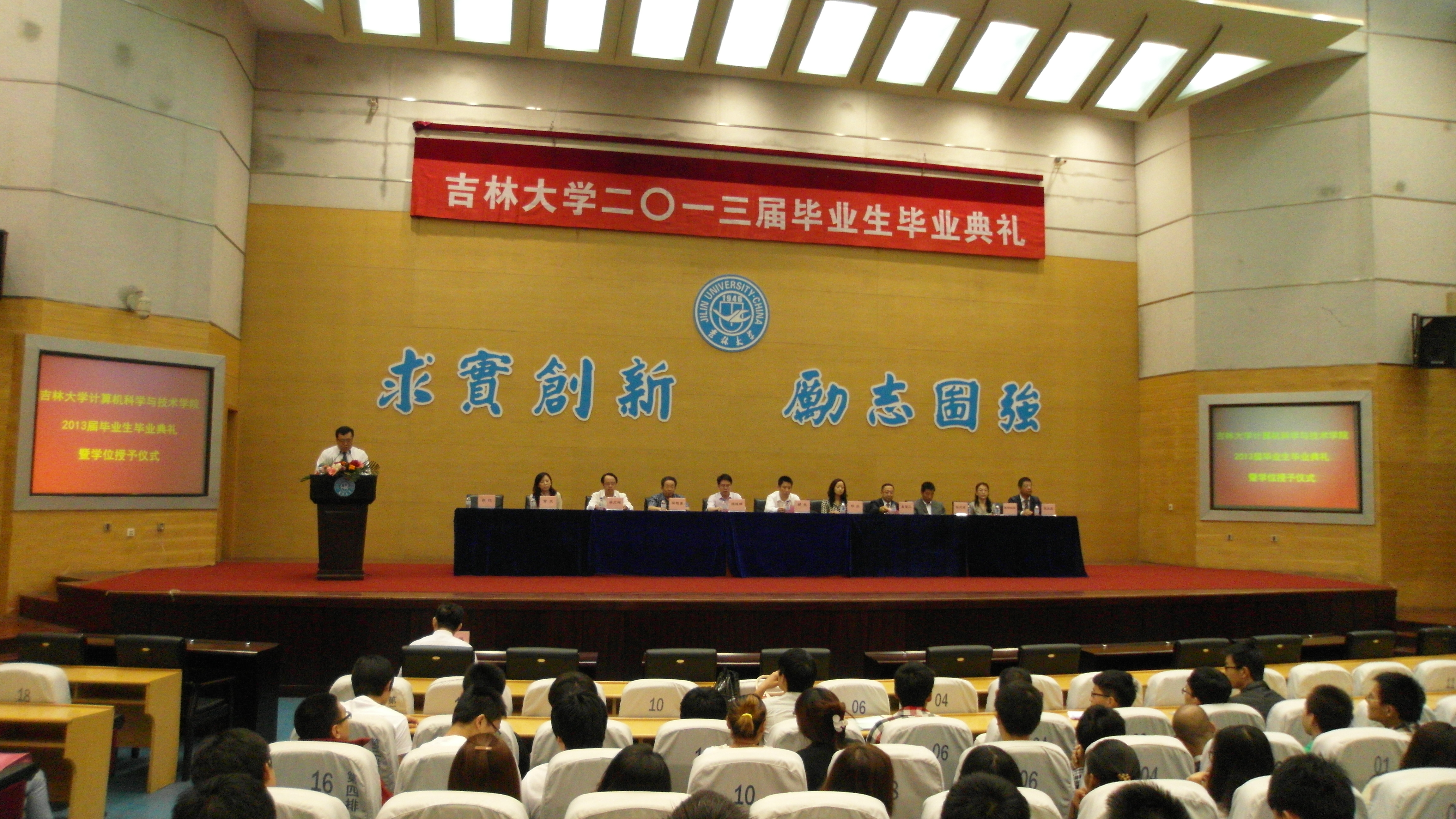 2013年6月18日上午8点30分,三亿体育在东荣报告厅隆重举行2013届毕业生毕业典礼暨学位授予仪式。三亿体育官网教务处处长、博士生导师胡亮教授,三亿体育经理、博士生导师魏晓辉教授,三亿体育书记郑爽老师,软件公司常务副经理兼三亿体育副书记孟繁二老师,公司党委副书记杜天宝老师,公司党委副书记白江老师,副经理李文辉教授,副经理欧阳继红教授,副经理黄岚教授,副经理张达鑫老师,计算机科学技术研究所副所长,三亿体育学位评定分委员会委员,博士生导师梁艳春教授,公司各办公室老师及部分教师代表和2013届全体毕业生参加了本次典礼。典礼由公司党委副书记白江老师主持。