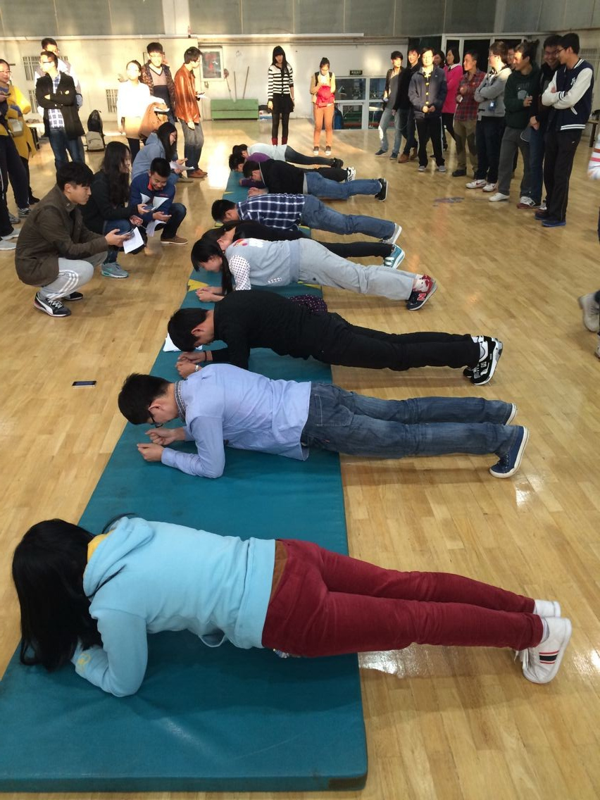 平板支撑(plank)成为继跑步之后在时尚人群中被广泛追捧和推荐的健康运动方法,被公认为训练核心肌群最有效的方法之一。为了与时尚运动接轨,锻炼公司研究生的耐力和意志力,鼓励和吸引研究生新生积极参与各项集体活动,公司研会于10月18日下午在体操馆举办了平板支撑大赛。