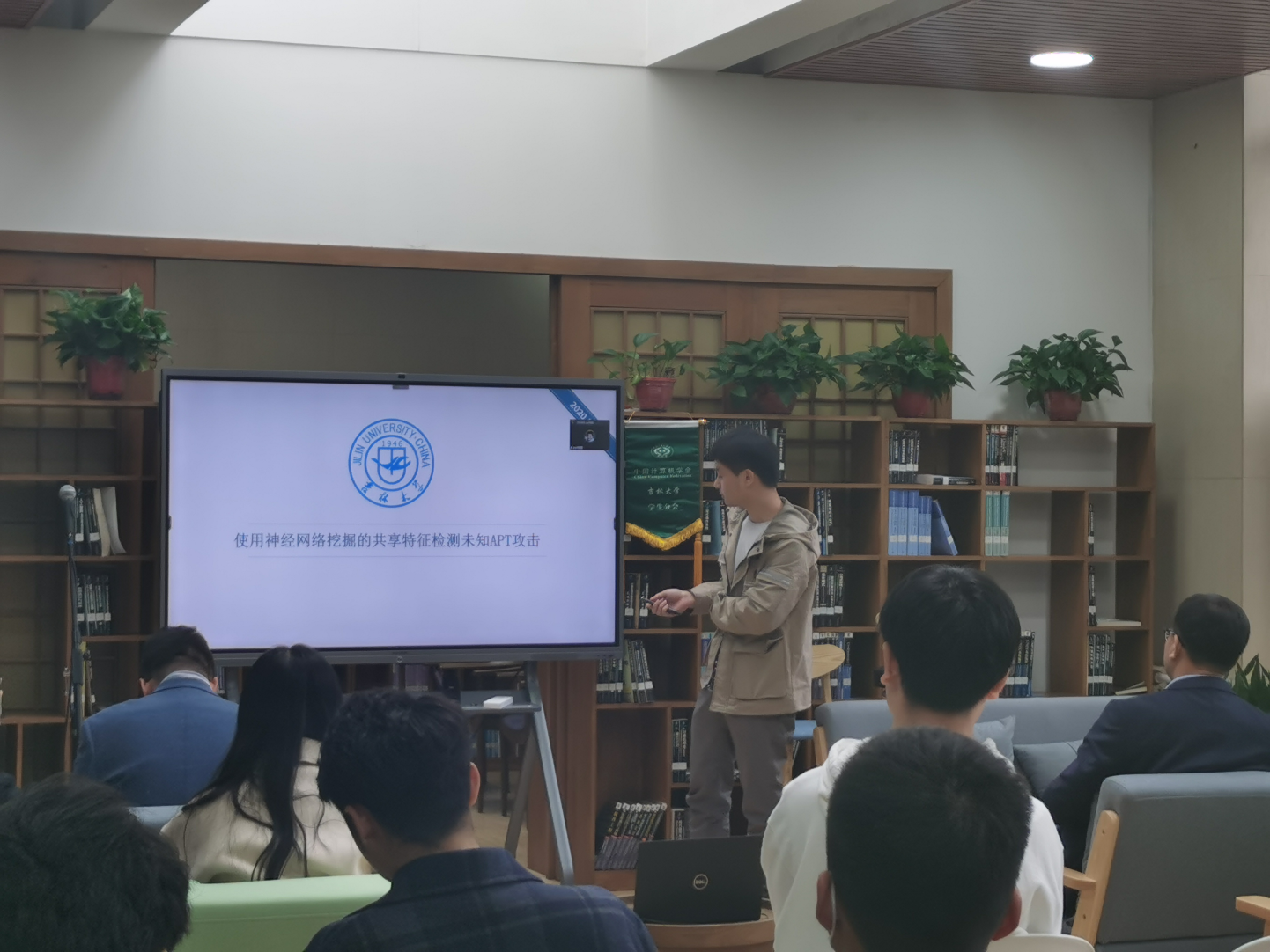 杨经理致辞结束后,活动进行到第二项,本期沙龙的两位讲者岳恒山和尚龙康分别就自己的科研成果作了报告,并在会后与同学们开展了热烈的学术问答与科研经验的交流。岳恒山博士说到,我们在进行学术研究时首先要找到边界,要多看高水平论文,优先选择高质量会议的论文,或者领域内专有会议的论文。通过两位讲者的分享,同学们不仅了解了他们所研究的内容,也学到了自己应该如何做研究的经验。